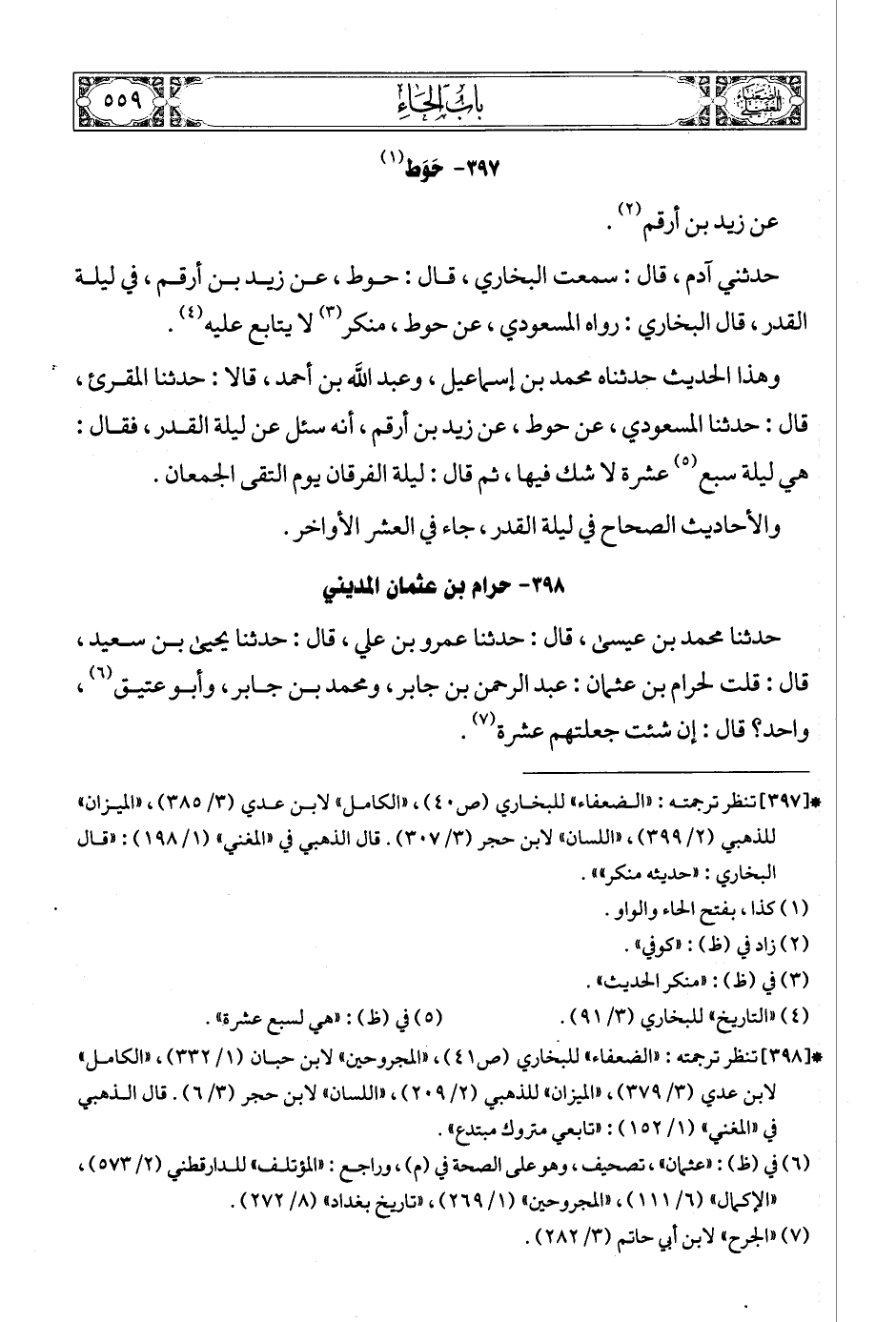 حدثني آدم، قال: سمعت البخاري، قال: حوط، عن زيد بن أرقم، في ليلة القدر، قال البخاري: رواه المسعودي، عن حوط، منكر (4) لا يتابع عليه (5).