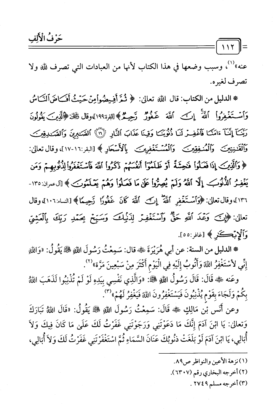 * الدليل من الكتاب: قال الله تعالى: {ثُمَّ أَفِيضُوا مِنْ حَيْثُ أَفَاضَ النَّاسُ وَاسْتَغْفِرُوا اللَّهَ إِنَّ اللَّهَ غَفُورٌ رَحِيمٌ} [البقرة: ١٩٩]، وقال عز وجل: {الَّذِينَ يَقُولُونَ رَبَّنَا إِنَّنَا آمَنَّا فَاغْفِرْ لَنَا ذُنُوبَنَا وَقِنَا عَذَابَ النَّارِ (١٦) الصَّابِرِينَ وَالصَّادِقِينَ وَالْقَانِتِينَ وَالْمُنْفِقِينَ وَالْمُسْتَغْفِرِينَ بِالْأَسْحَارِ} [آل عمران: ١٦، ١٧]، وقال تعالى: {وَالَّذِينَ إِذَا فَعَلُوا فَاحِشَةً أَوْ ظَلَمُوا أَنْفُسَهُمْ ذَكَرُوا اللَّهَ فَاسْتَغْفَرُوا لِذُنُوبِهِمْ وَمَنْ يَغْفِرُ الذُّنُوبَ إِلَّا اللَّهُ وَلَمْ يُصِرُّوا عَلَى مَا فَعَلُوا وَهُمْ يَعْلَمُونَ} [آل عمران: ١٣٥]، وقال تعالى: {وَاسْتَغْفِرِ اللَّهَ إِنَّ اللَّهَ كَانَ غَفُورًا رَحِيمًا} [النساء: ١٠٦]، وقال تعالى: {إِنَّ وَعْدَ اللَّهِ حَقٌّ وَاسْتَغْفِرْ لِذَنْبِكَ وَسَبِّحْ بِحَمْدِ رَبِّكَ بِالْعَشِيِّ وَالْإِبْكَارِ} [غافر: ٥٥].