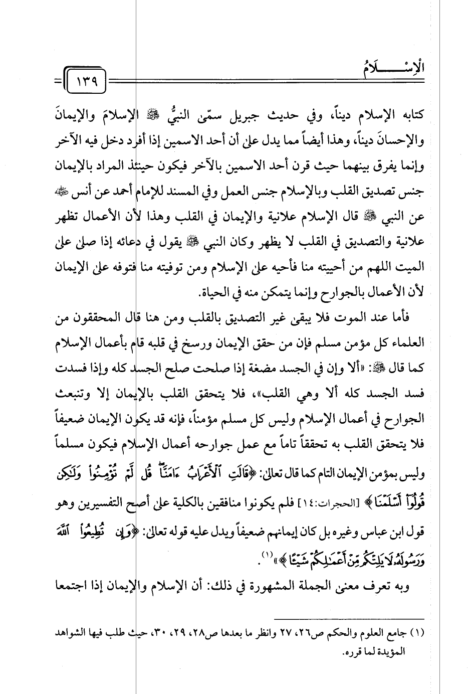 (¬١) جامع العلوم والحكم ص ٢٦، ٢٧ وانظر ما بعدها ص ٢٨، ٢٩، ٣٠، حيث طلب فيها الشواهد المؤيدة لما قرره.