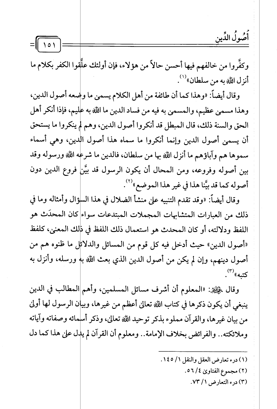 (¬١) درء تعارض العقل والنقل ١/ ١٤٥.
