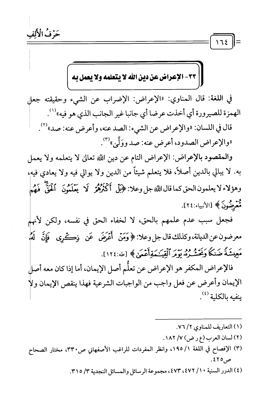 ٣٣ - الإعراض عن دين الله لا يتعلمه ولا يعمل به
