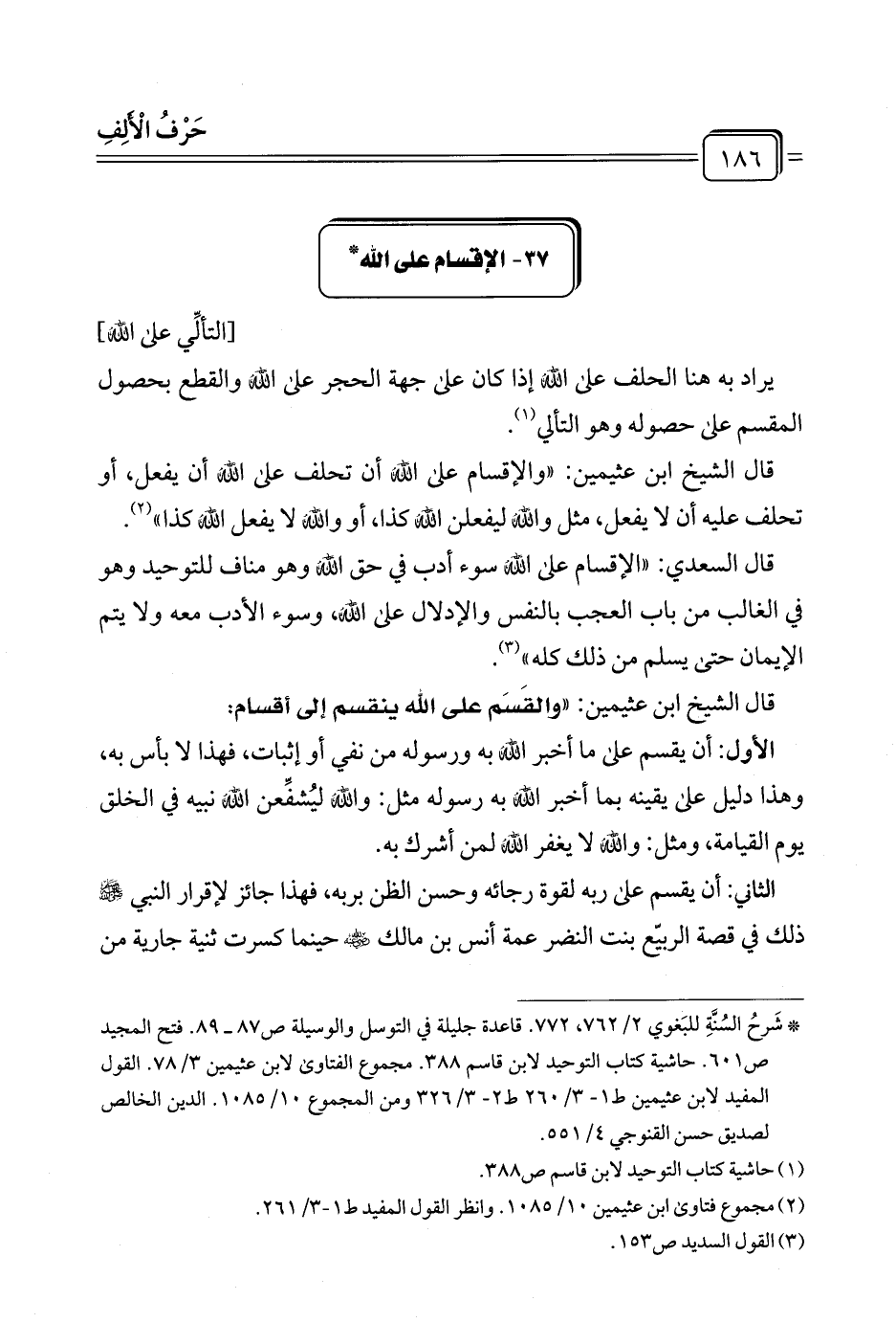 قال الشيخ ابن عثيمين: "والقَسَم على الله ينقسم إلى أقسام:
