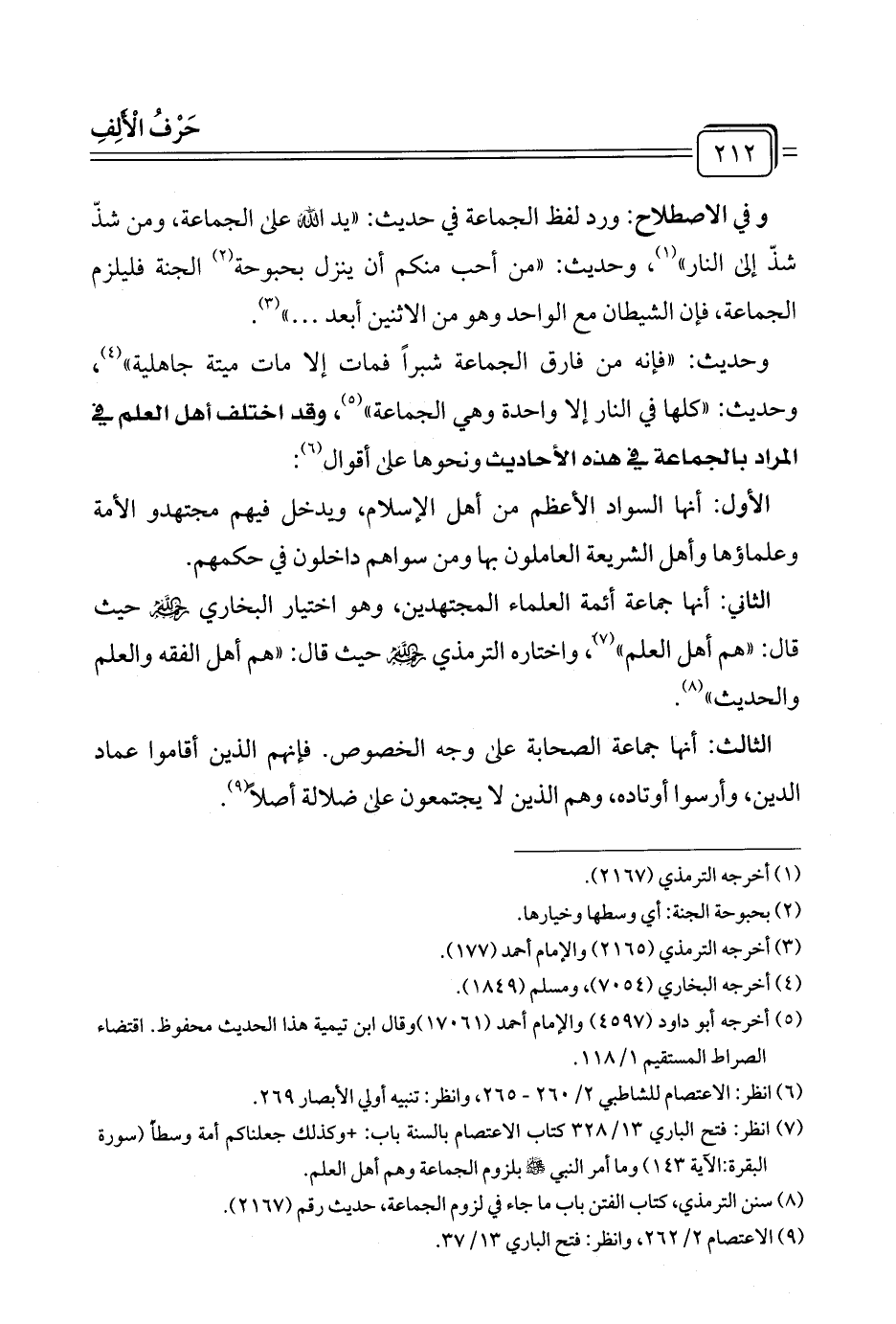 (¬٨) سنن الترمذي، كتاب الفتن باب ما جاء في لزوم الجماعة، حديث رقم (٢١٦٧).