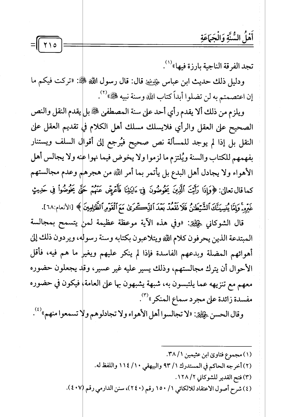 (¬٤) شرح أصول الاعتقاد للالكائي ١/ ١٥٠ رقم (٢٤٠)، سنن الدارمي رقم (٤٠٧).