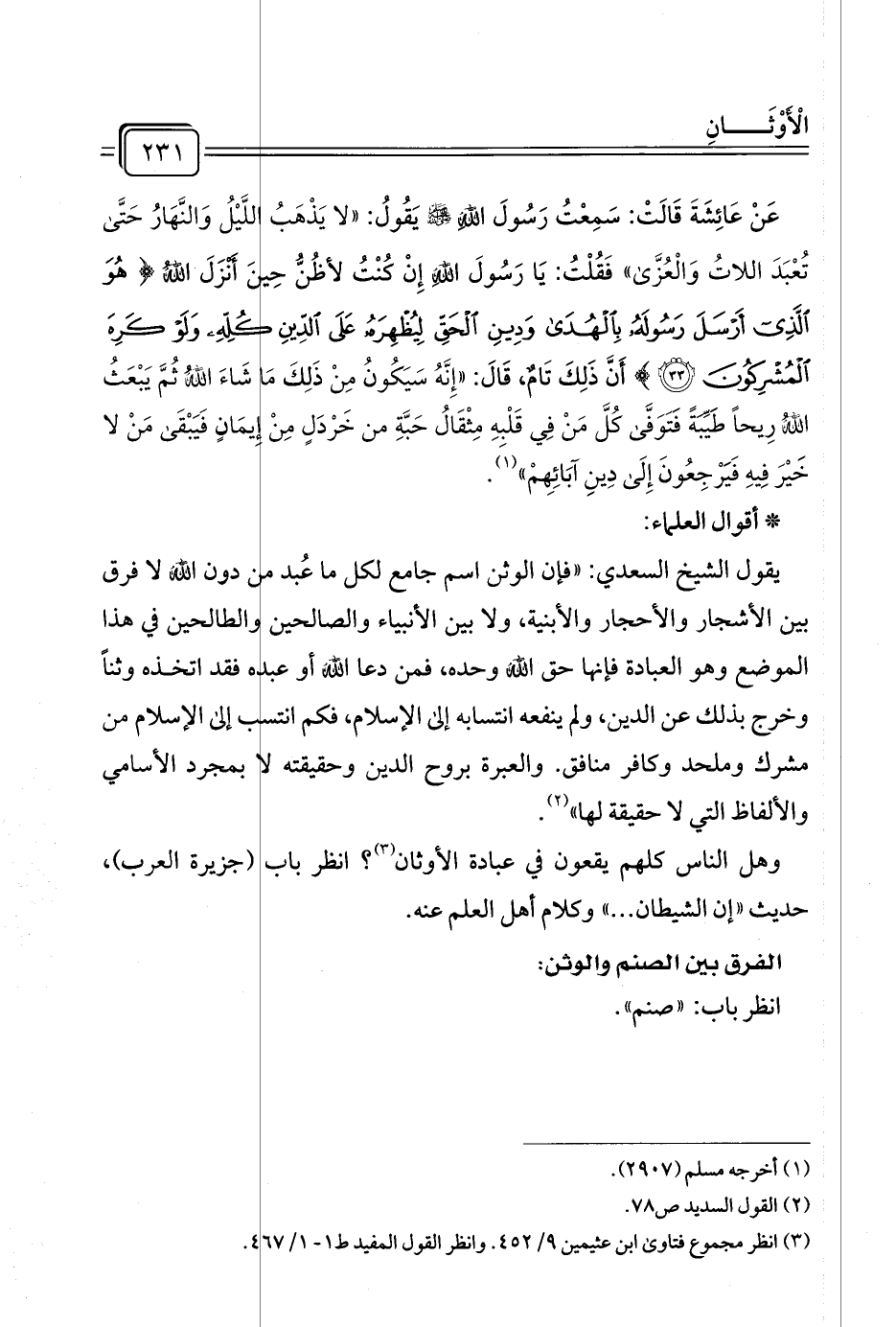 (¬٣) انظر مجموع فتاوى ابن عثيمين ٩/ ٤٥٢. وانظر القول المفيد ط ١ - ١/ ٤٦٧.