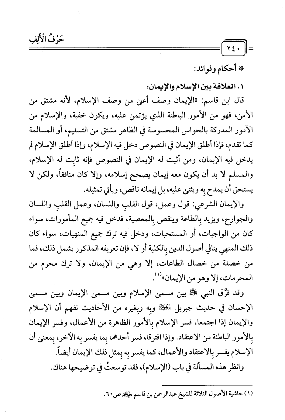 (¬١) حاشية الأصول الثلاثة للشيخ عبد الرحمن بن قاسم رحمهُ اللهُ ص ٦٠.