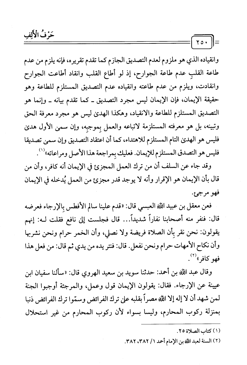 (¬٢) السنة لعبد الله بن الإمام أحمد ١/ ٣٨٢، ٣٨٢.