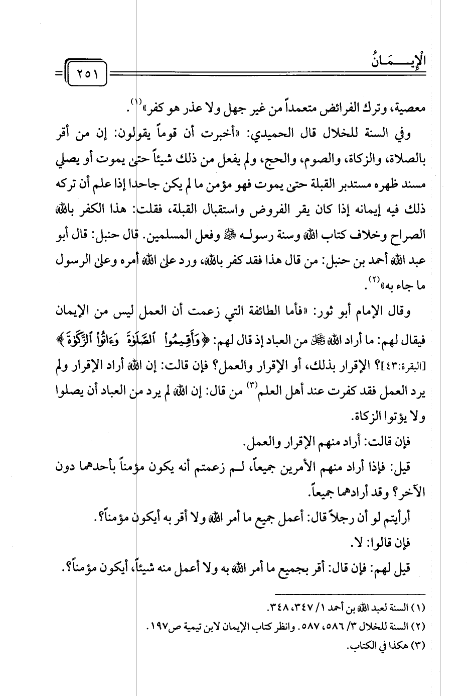 (¬٢) السنة للخلال ٣/ ٥٨٦، ٥٨٧. وانظر كتاب الإيمان لابن تيمية ص ١٩٧.