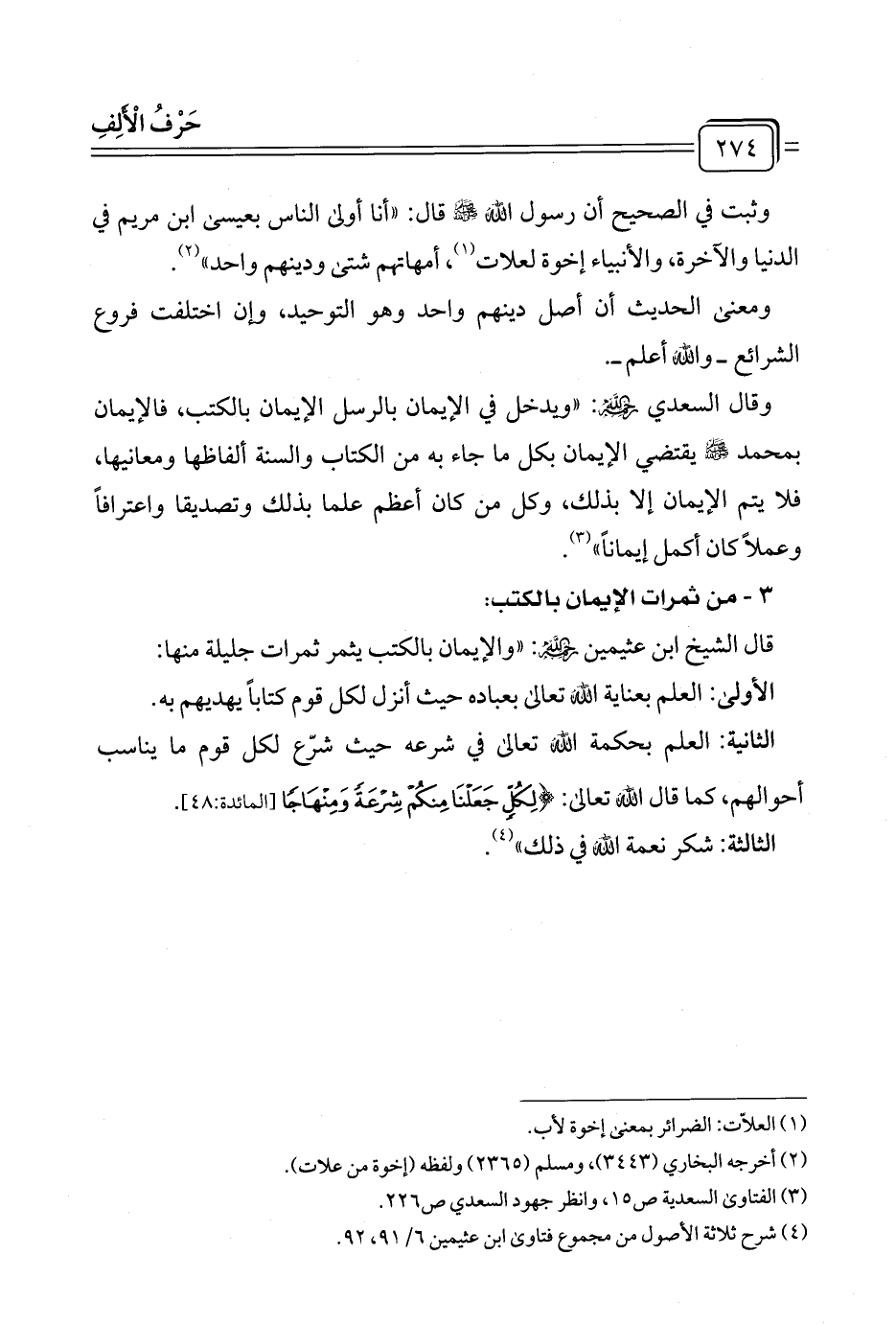 قال الشيخ ابن عثيمين رَحِمَهُ الله: "والإيمان بالكتب يثمر ثمرات جليلة منها: