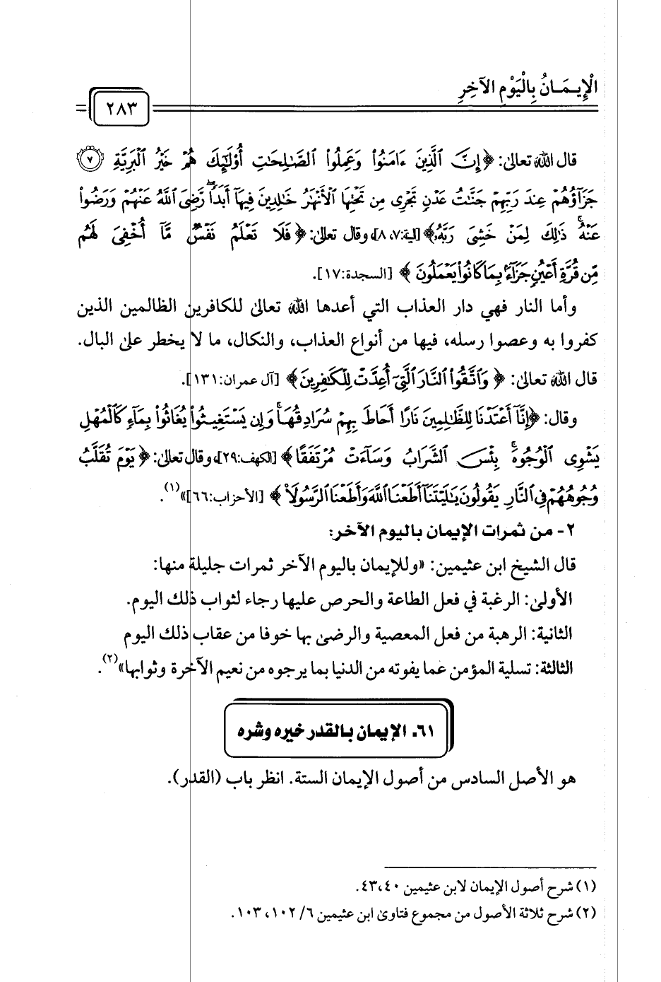 (¬١) شرح أصول الإيمان لابن عثيمين ٤٠، ٤٣.