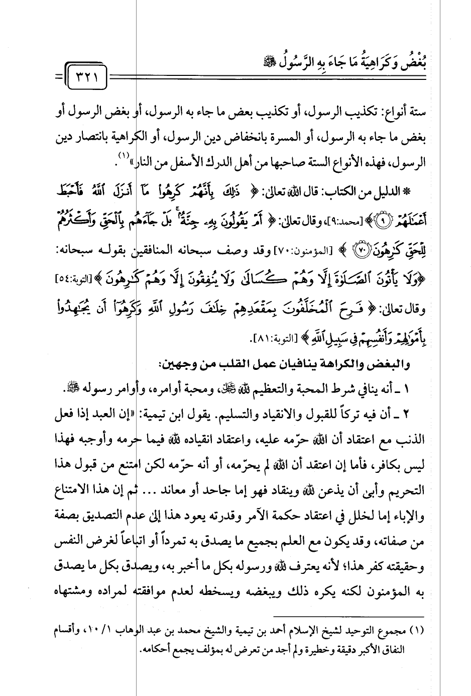 (¬١) مجموع التوحيد لشيخ الإسلام أحمد بن تيمية والشيخ محمد بن عبد الوهاب ١/ ١٠، وأقسام النفاق الأكبر دقيقة وخطيرة ولم أجد من تعرض له بمؤلف يجمع أحكامه.