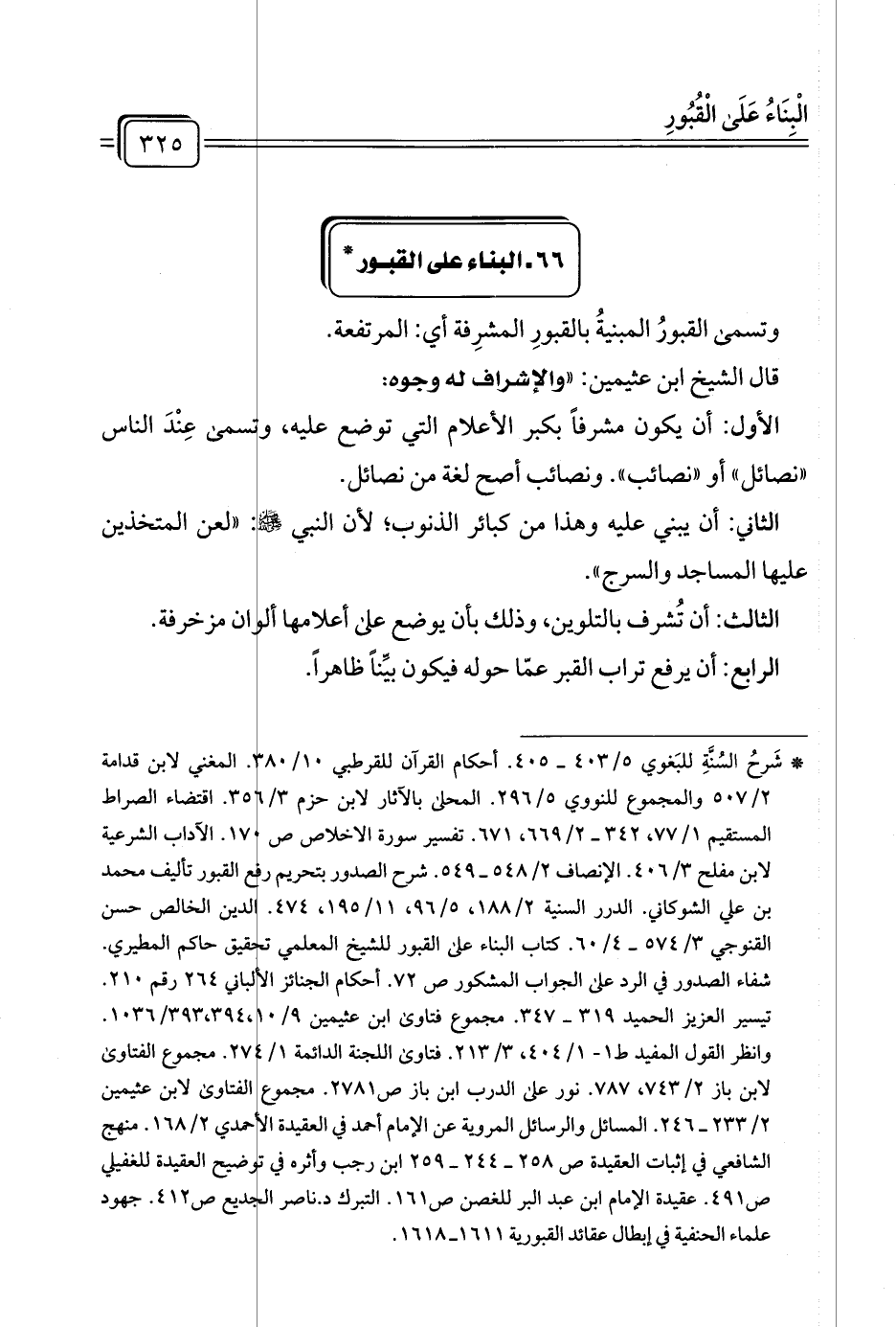 * شَرحُ السُنَّةِ للبَغوي ٥/ ٤٠٣ - ٤٠٥. أحكام القرآن للقرطبي ١٠/ ٣٨٠. المغني لابن قدامة ٢/ ٥٠٧ والمجموع للنووي ٥/ ٢٩٦. المحلى بالآثار لابن حزم ٣/ ٣٥٦. اقتضاء الصراط المستقيم ١/ ٧٧، ٣٤٢ - ٢/ ٦٦٩، ٦٧١. تفسير سورة الإخلاص ص ١٧٠. الآداب الشرعية لابن مفلح ٣/ ٤٠٦. الإنصاف ٢/ ٥٤٨ - ٥٤٩. شرح الصدور بتحريم رفع القبور تأليف محمد بن علي الشوكاني. الدرر السنية ٢/ ١٨٨، ٥/ ٩٦، ١١/ ١٩٥، ٤٧٤. الدين الخالص حسن القنوجي ٣/ ٥٧٤ - ٤/ ٦٠. كتاب البناء على القبور للشيخ المعلمي تحقيق حاكم المطيري. شفاء الصدور في الرد على الجواب المشكور ص ٧٢. أحكام الجنائز الألباني ٢٦٤ رقم ٢١٠. تيسير العزيز الحميد ٣١٩ - ٣٤٧. مجموع فتاوى ابن عثيمين ٩/ ١٠، ٣٩٣، ٣٩٤/ ١٠٣٦. وانظر القول المفيد ط ١ - ١/ ٤٠٤، ٣/ ٢١٣. فتاوى اللجنة الدائمة ١/ ٢٧٤. مجموع الفتاوى لابن باز ٢/ ٧٤٣، ٧٨٧. نور على الدرب ابن باز ص ٢٧٨١. مجموع االفتاوى لابن عثيمين ٢/ ٢٣٣ - ٢٤٦. المسائل والرسائل المروية عن الإمام أحمد في العقيدة الأحمدي ٢/ ١٦٨. منهج الشافعي في إثبات العقيدة ص ٢٥٨ - ٢٤٤ - ٢٥٩ ابن رجب وأثره في توضيح العقيدة للغفيلي ص ٤٩١. عقيدة الامام ابن عبد البر للغصن ص ١٦١. التبرك د. ناصر الخديع ص ٤١٢.جهود علماء الحنفية في إبطال عقائد القبورية ١٦١١ - ١٦١٨.