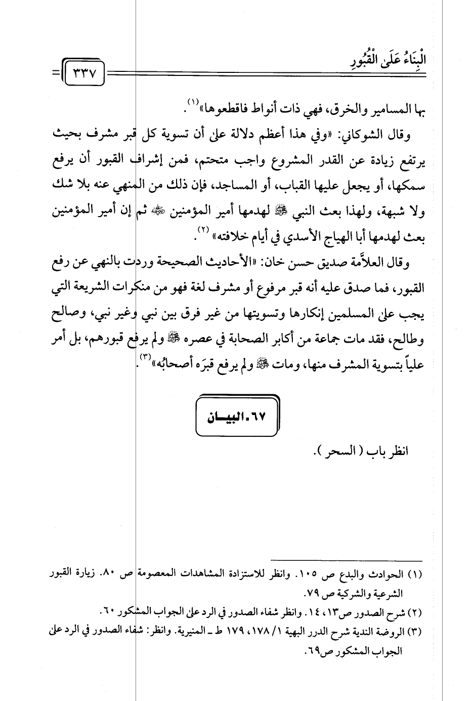 (¬١) الحوادث والبدع ص ١٠٥. وانظر للاستزادة المشاهدات المعصومة ص ٨٠. زيارة القبور الشرعية والشركية ص ٧٩.