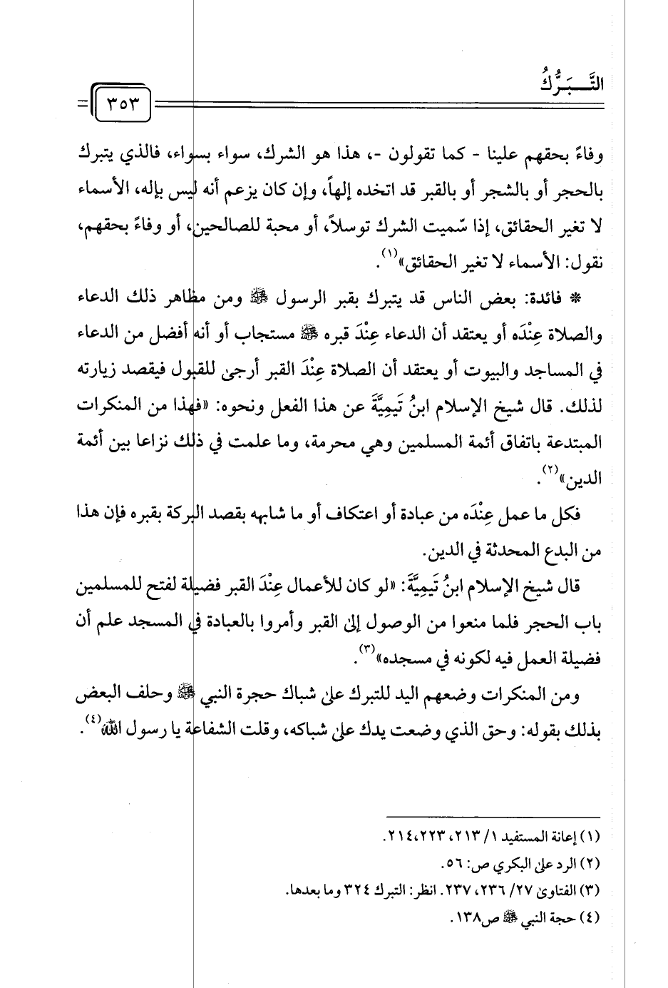 (¬٣) الفتاوى ٢٧/ ٢٣٦، ٢٣٧. انظر: التبرك ٣٢٤ وما بعدها.