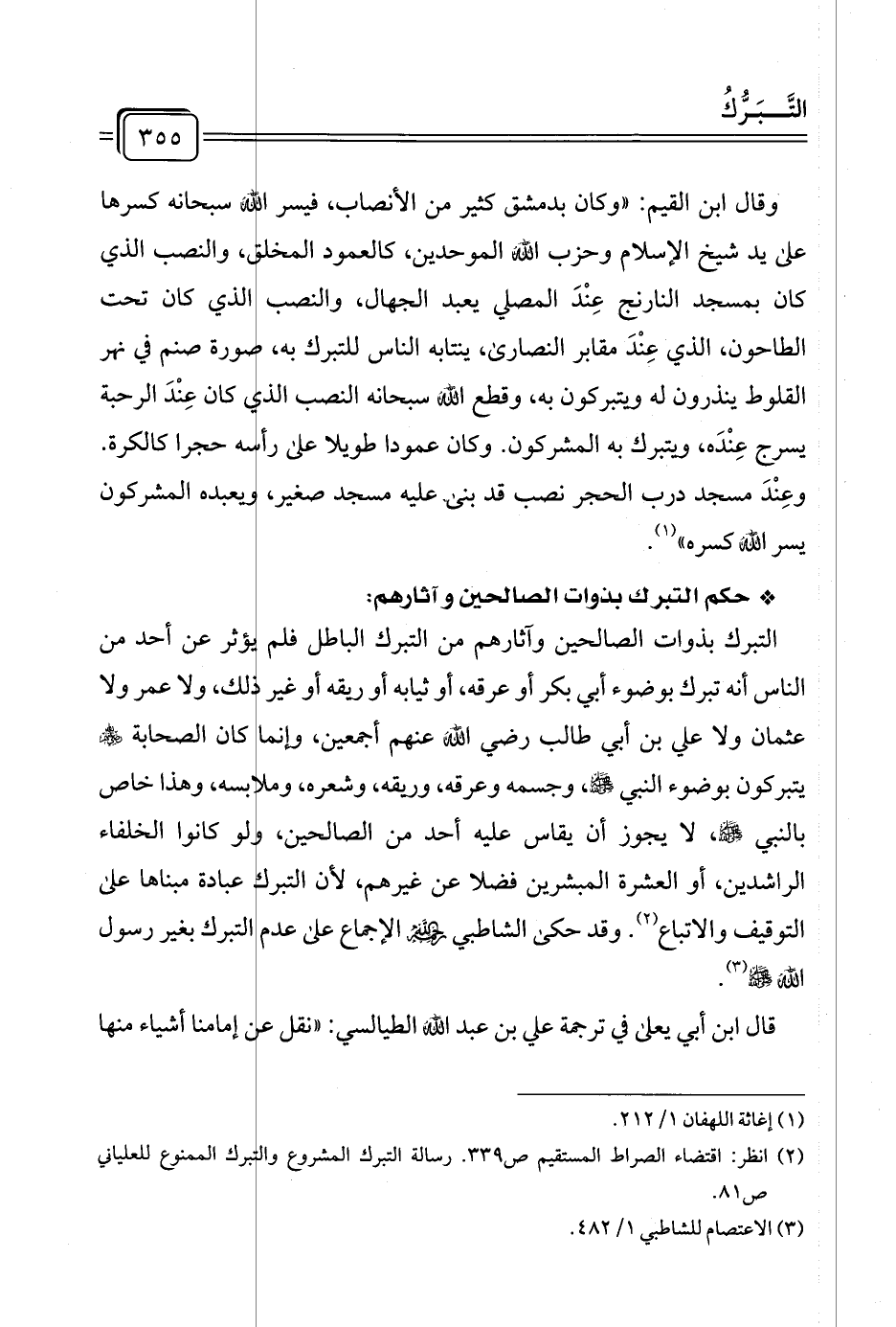 (¬٢) انظر: اقتضاء الصراط المستقيم ص ٣٣٩. رسالة التبرك المشروع والتبرك الممنوع للعلياني ص ٨١.
