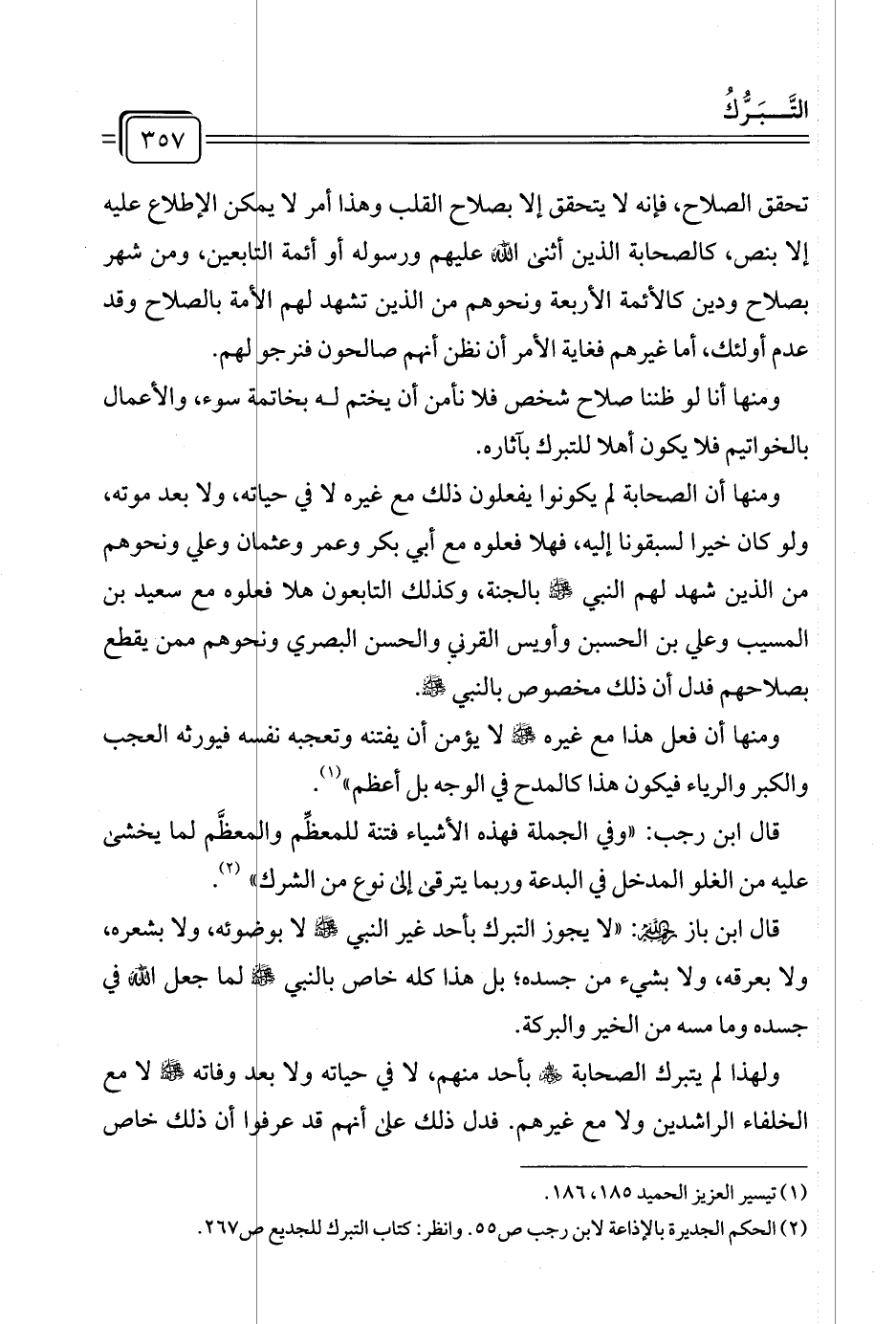 (¬٢) الحكم الجديرة بالإذاعة لابن رجب ص ٥٥. وانظر: كتاب التبرك للجديع ص ٢٦٧.