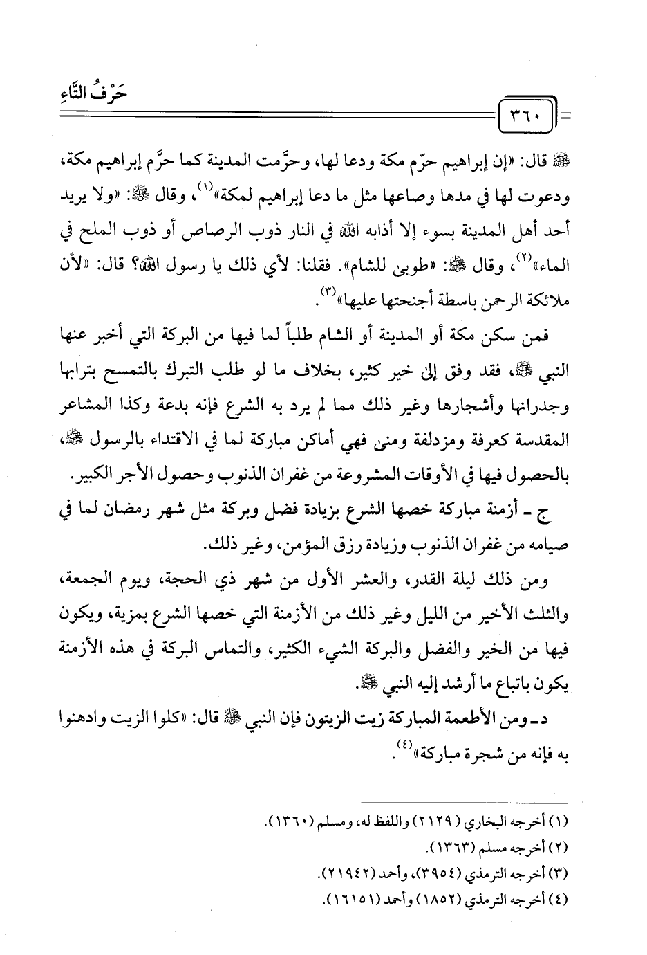 -صلى الله عليه وسلم- قال: "إن إبراهيم حرّم مكة ودعا لها، وحرَّمت المدينة كما حرَّم إبراهيم مكة، ودعوت لها في مدها وصاعها مثل ما دعا إبراهيم لمكة" (¬١)، وقال -صلى الله عليه وسلم-: "ولا يريد أحد أهل المدينة بسوء إلا أذابه الله في النار ذوب الرصاص أو ذوب الملح في الماء" (¬٢)، وقال -صلى الله عليه وسلم-: "طوبى للشام". فقلنا: لأي ذلك يا رسول الله؟ قال: "لأن ملائكة الرحمن باسطة أجنحتها عليها" (¬٣).