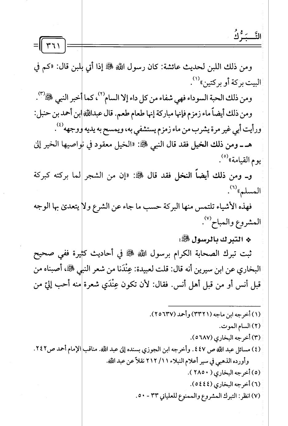 (¬٧) انظر: التبرك المشروع والممنوع للعلياني ٣٣ - ٥٠.