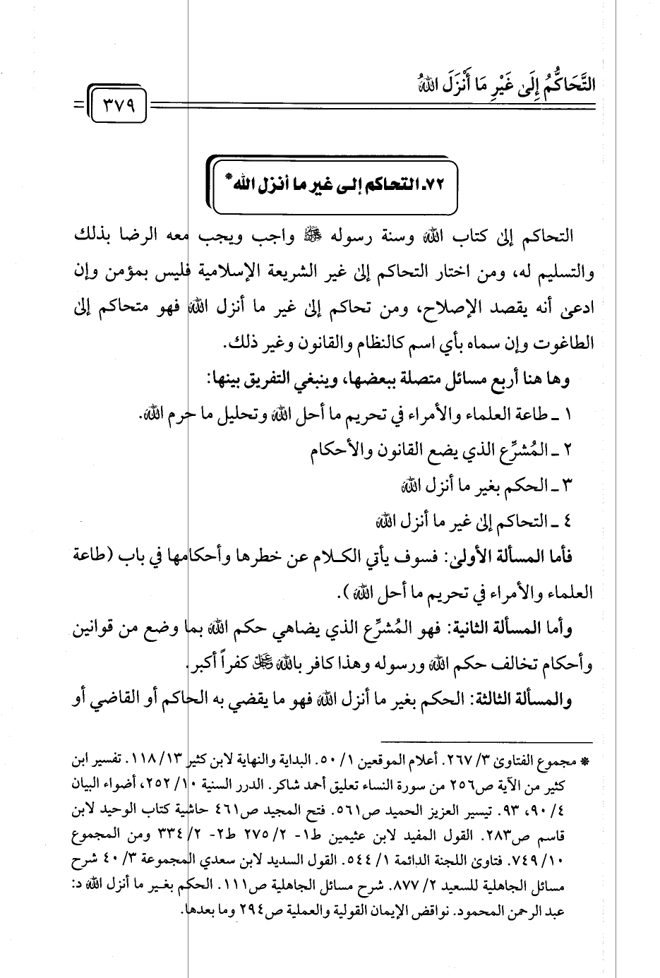 ٧٢ - التحاكم إلى غير ما أنزل الله *
