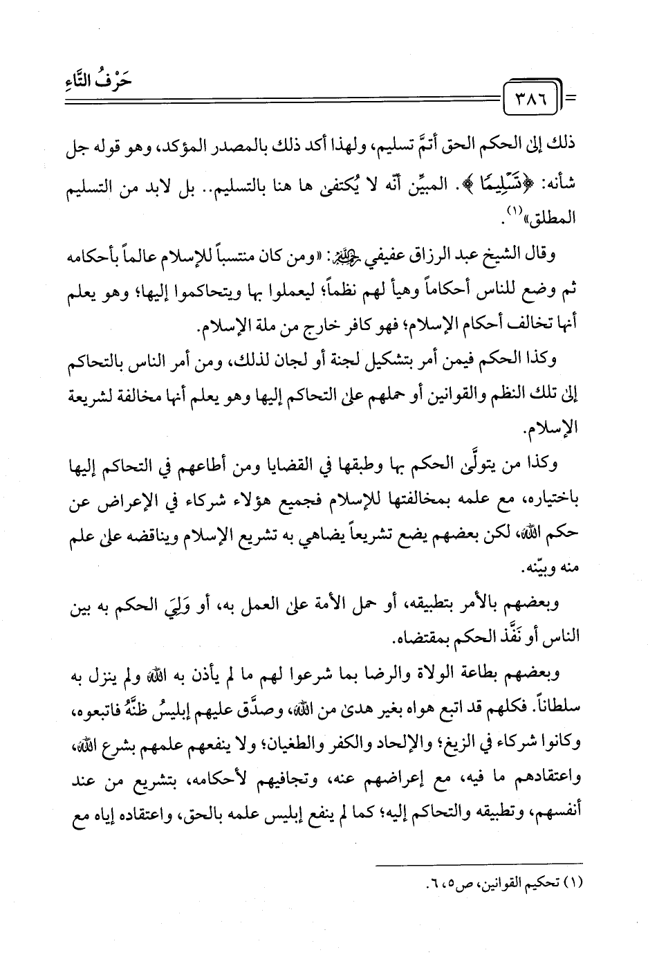 وكذا من يتولَّى الحكم بها وطبقها في القضايا ومن أطاعهم في التحاكم إليها باختياره، مع علمه بمخالفتها للإسلام فجميع هؤلاء شركاء في الإعراض عن حكم الله، لكن بعضهم يضع تشريعًا يضاهي به تشريع الإسلام ويناقضه على علم منه وبيّنه.