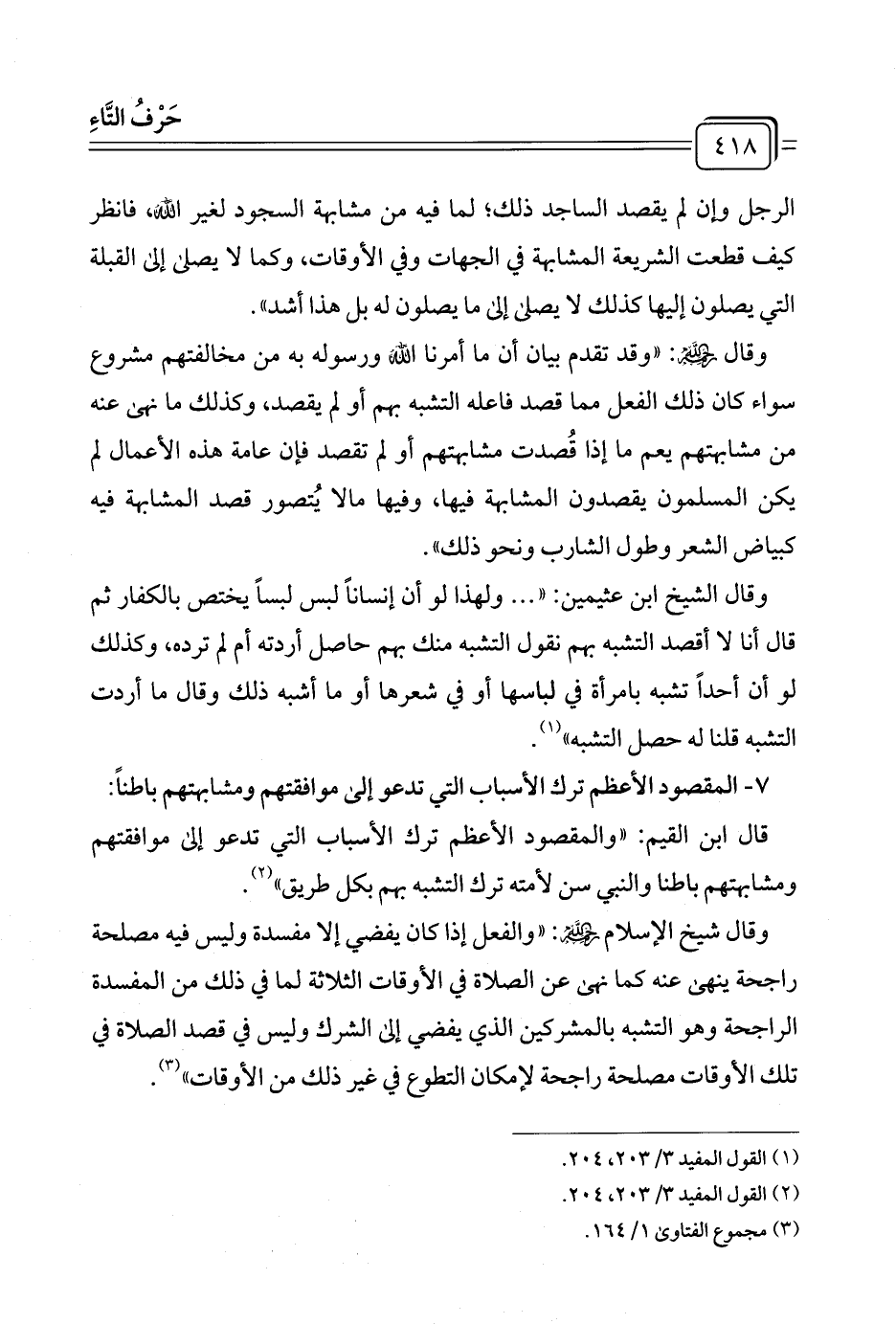 (¬١) القول المفيد ٣/ ٢٠٣، ٢٠٤.