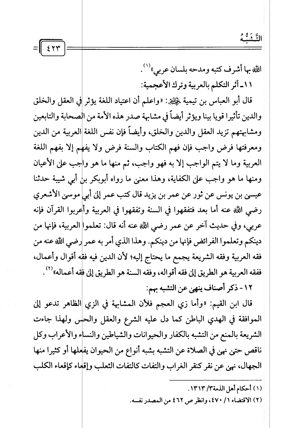 (¬٢) الاقتضاء ١/ ٤٧٠، وانظر ص ٤٦٢ من المصدر نفسه.