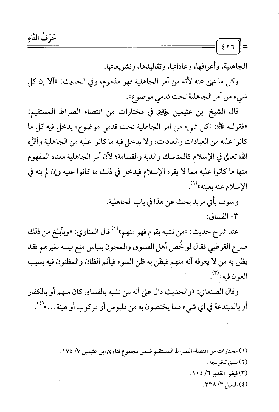 (¬١) مختارات من اقتضاء الصراط المستقيم ضمن مجموع فتاوى ابن عثيمين ٧/ ١٧٤.