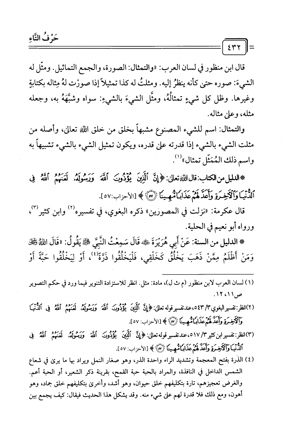 (¬١) لسان العرب لابن منظور (م ث ل)، مادة: مثل. انظر للاستزادة التنوير فيما ورد في حكم التصوير ص ١١، ١٢.