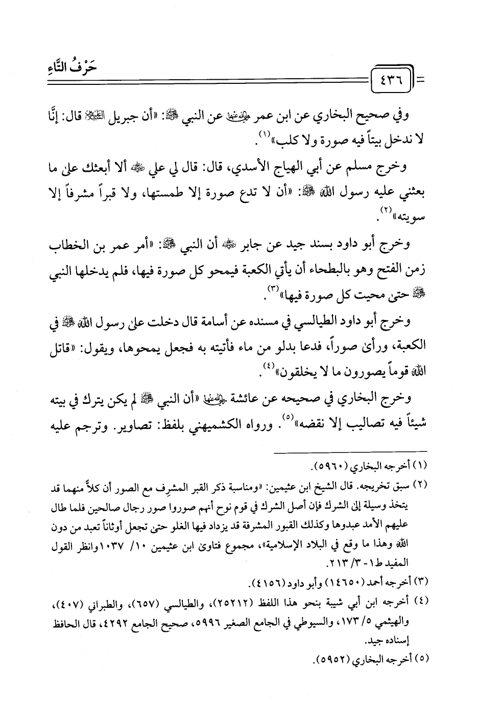 (¬٢) سبق تخريجه. قال الشيخ ابن عثيمين: "ومناسبة ذكر القبر المشرِف مع الصور أن كلًّا منهما قد يتخذ وسيلة إلى الشرك فإن أصل الشرك في قوم نوح أنهم صوروا صور رجال صالحين فلما طال عليهم الأمد عبدوها وكذلك القبور المشرفة قد يزداد فيها الغلو حتى تجعل أوثانًا تعبد من دون الله وهذا ما وقع في البلاد الإسلامية"، مجموع فتاوى ابن عثيمين ١٠/ ١٠٣٧ وانظر القول المفيد ط ١ - ٣/ ٢١٣.