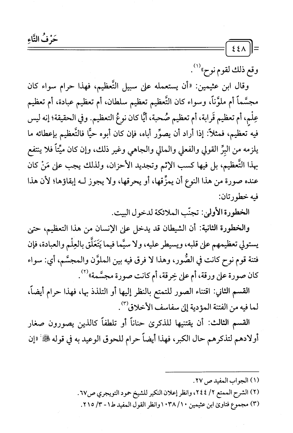 (¬٣) مجموع فتاوى ابن عثيمين ١٠/ ١٠٣٨ وانظر القول المفيد ط ١ - ٣/ ٢١٥.