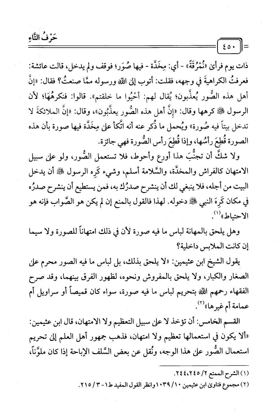 (¬٢) مجموع فتاوى ابن عثيمين ١٠/ ١٠٣٩ وانظر القول المفيد ط ١ - ٣/ ٢١٥.