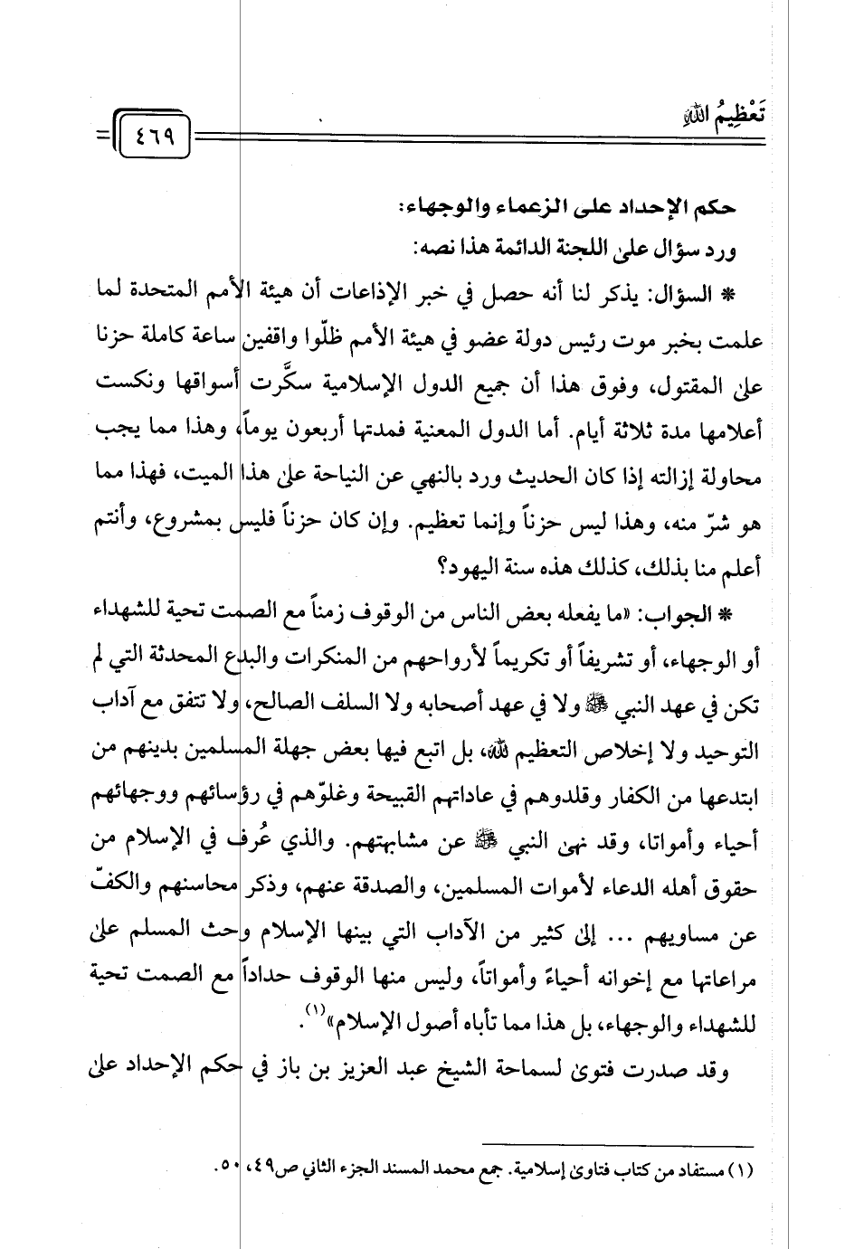(¬١) مستفاد من كتاب فتاوى إسلامية. جمع محمد المسند الجزء الثاني ص ٤٩، ٥٠.