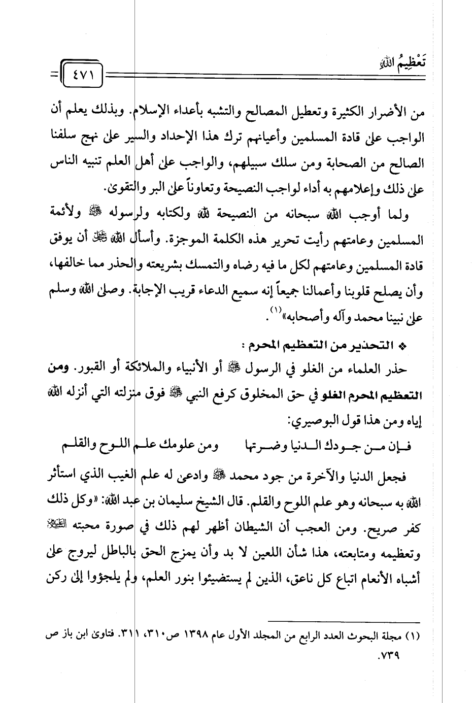 (¬١) مجلة البحوث العدد الرابع من المجلد الأول عام ١٣٩٨ ص ٣١٠، ٣١١. فتاوى ابن باز ص ٧٣٩.