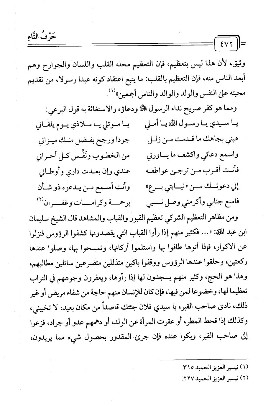 (¬٢) تيسير العزيز الحميد ٢٢٧.