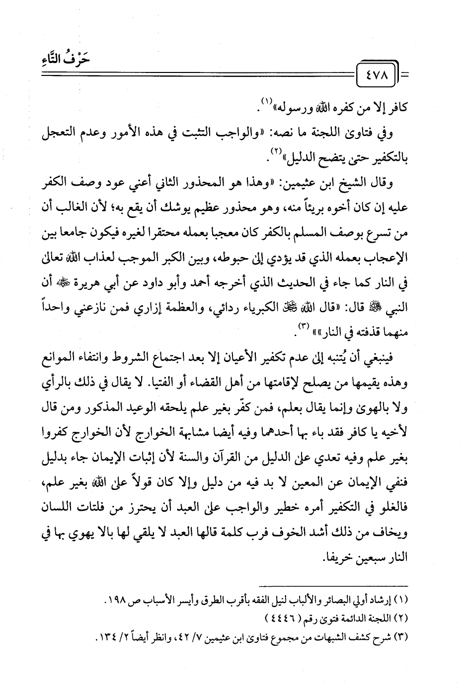 وفي فتاوى اللجنة ما نصه: "والواجب التثبت في هذه الأمور وعدم التعجل بالتكفير حتى يتضح الدليل" (¬٢).