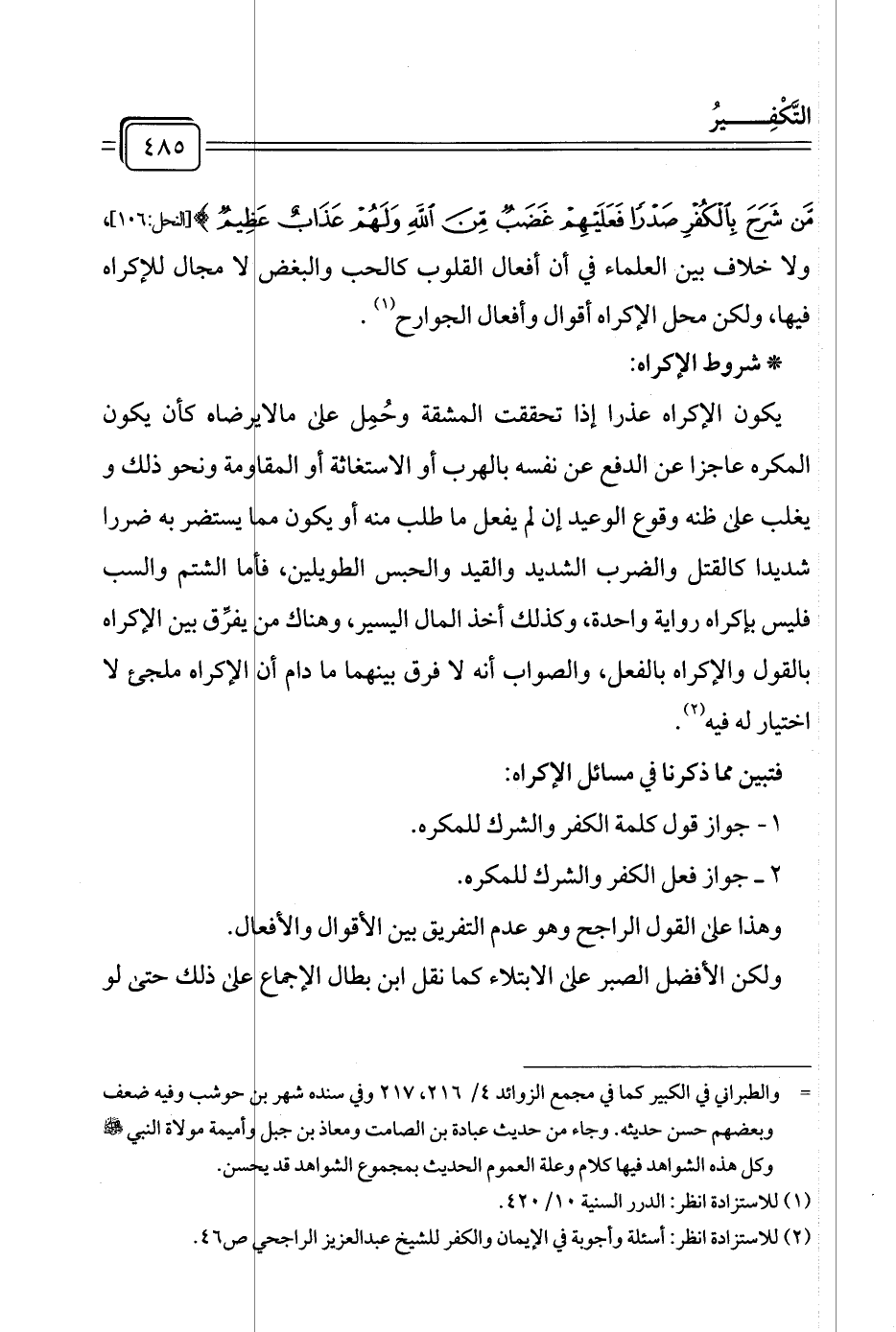 (¬٢) للاستزادة انظر: أسئلة وأجوبة في الإيمان والكفر للشيخ عبد العزيز الراجحي ص ٤٦.