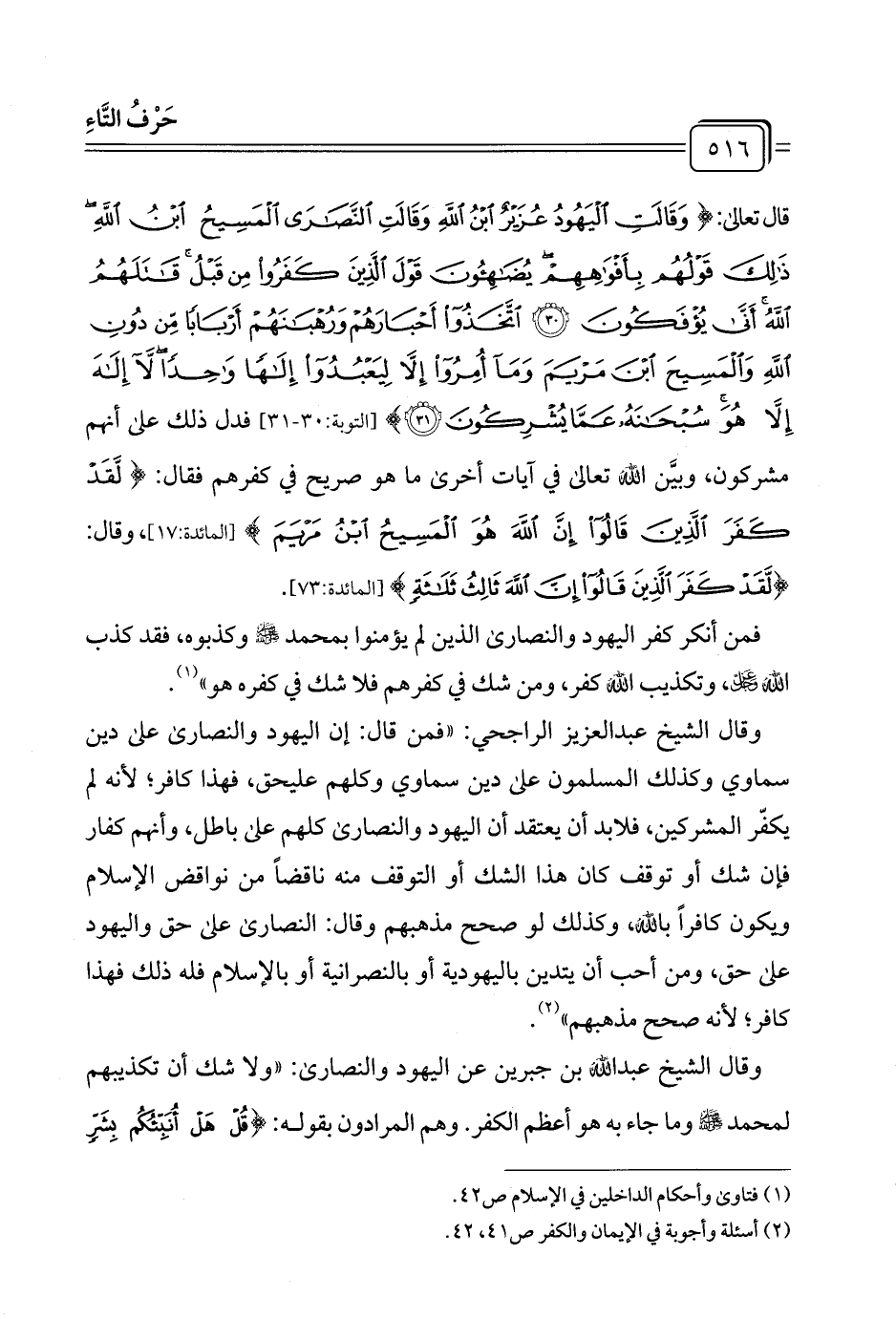 (¬٢) أسئلة وأجوبة في الإيمان والكفر ص ٤١، ٤٢.