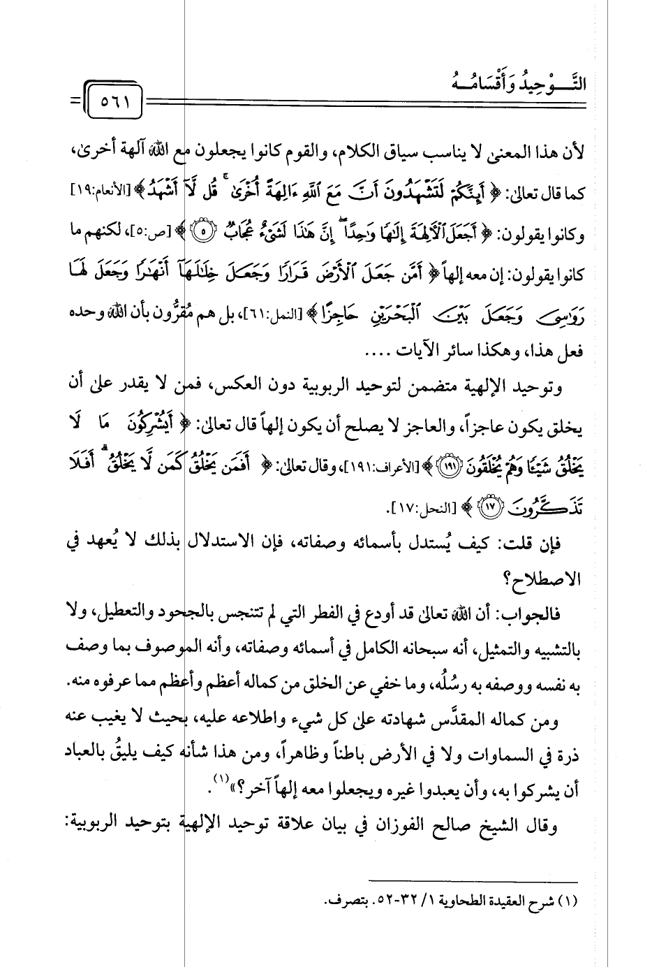 وقال الشيخ صالح الفوزان في بيان علاقة توحيد الإلهية بتوحيد الربوبية: