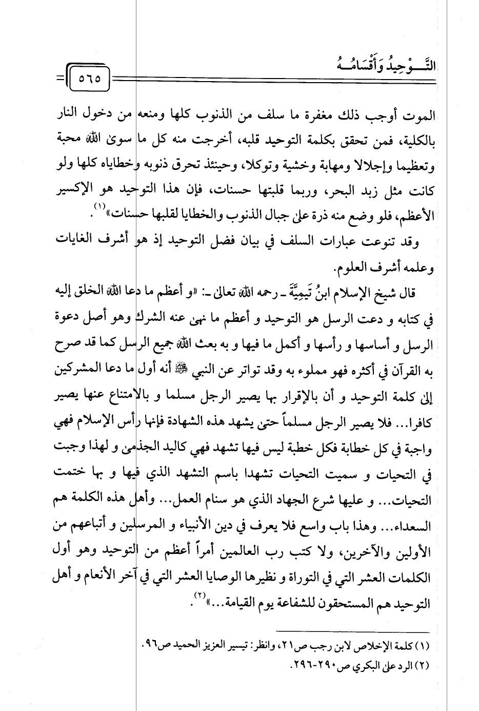 (¬١) كلمة الإخلاص لابن رجب ص ٢١، وانظر: تيسير العزيز الحميد ص ٩٦.