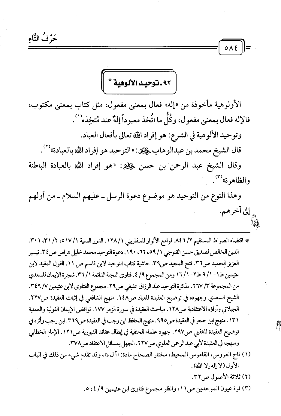 (¬٣) قرة عيون الموحدين ص ١١، وانظر مجموع فتاوى ابن عثيمين ٩/ ٤، ٥.