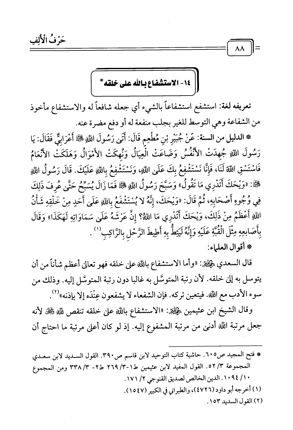 * فتح المجيد ص ٦٠٥. حاشية كتاب التوحيد لابن قاسم ص ٣٩٠. القول السديد لابن سعدي المجموعة ٣/ ٥٢. القول المفيد لابن عثيمين ط ١ - ٣/ ٢٦٩ ط ٢ - ٣/ ٣٣٨ ومن المجموع ١٠/ ١٠٩٤. الدين الخالص لصديق القنوجي ٢/ ١٧١.