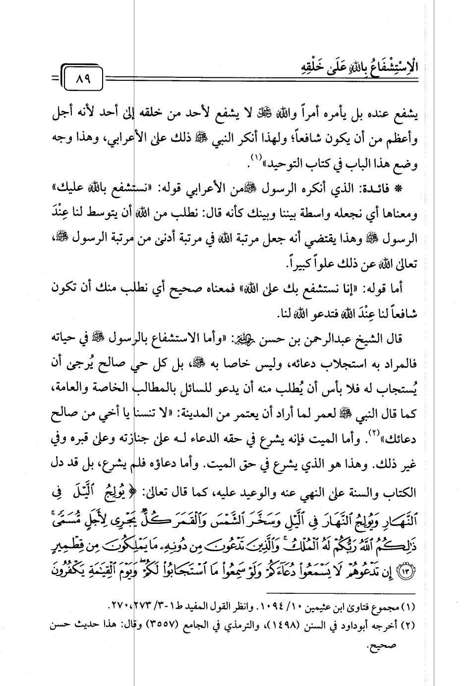 (¬١) مجموع فتاوى ابن عثيمين ١٠/ ١٠٩٤. وانظر القول المفيد ط ١ - ٣/ ٢٧٣، ٢٧٠.