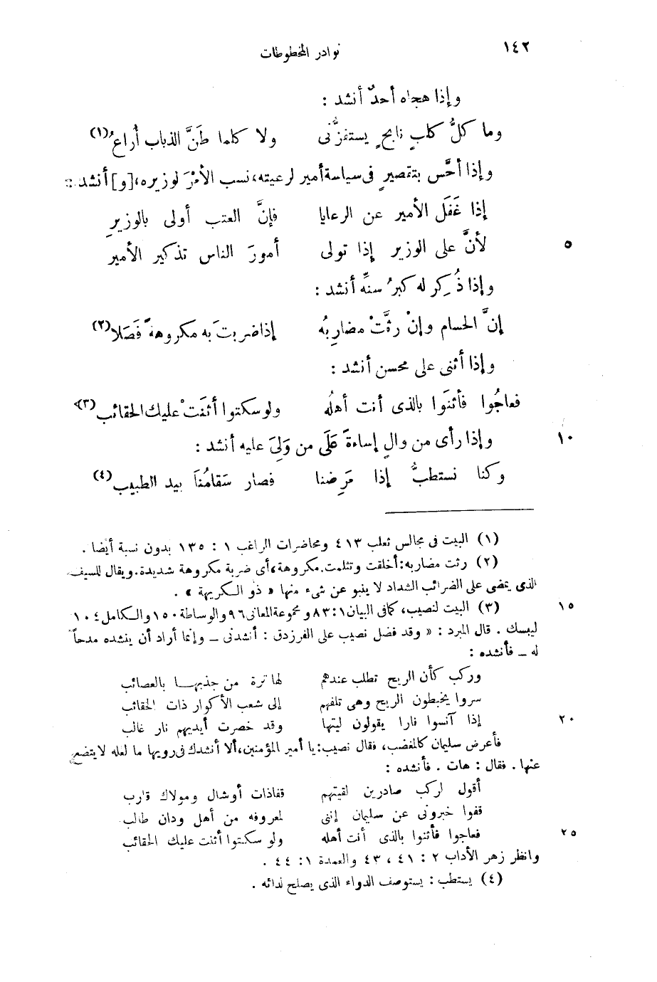 وإذا أحَّس بتقصيرٍ في سياسة أُمير لرعيته، نسب الأمْرَ لوزيره، وأنشد: