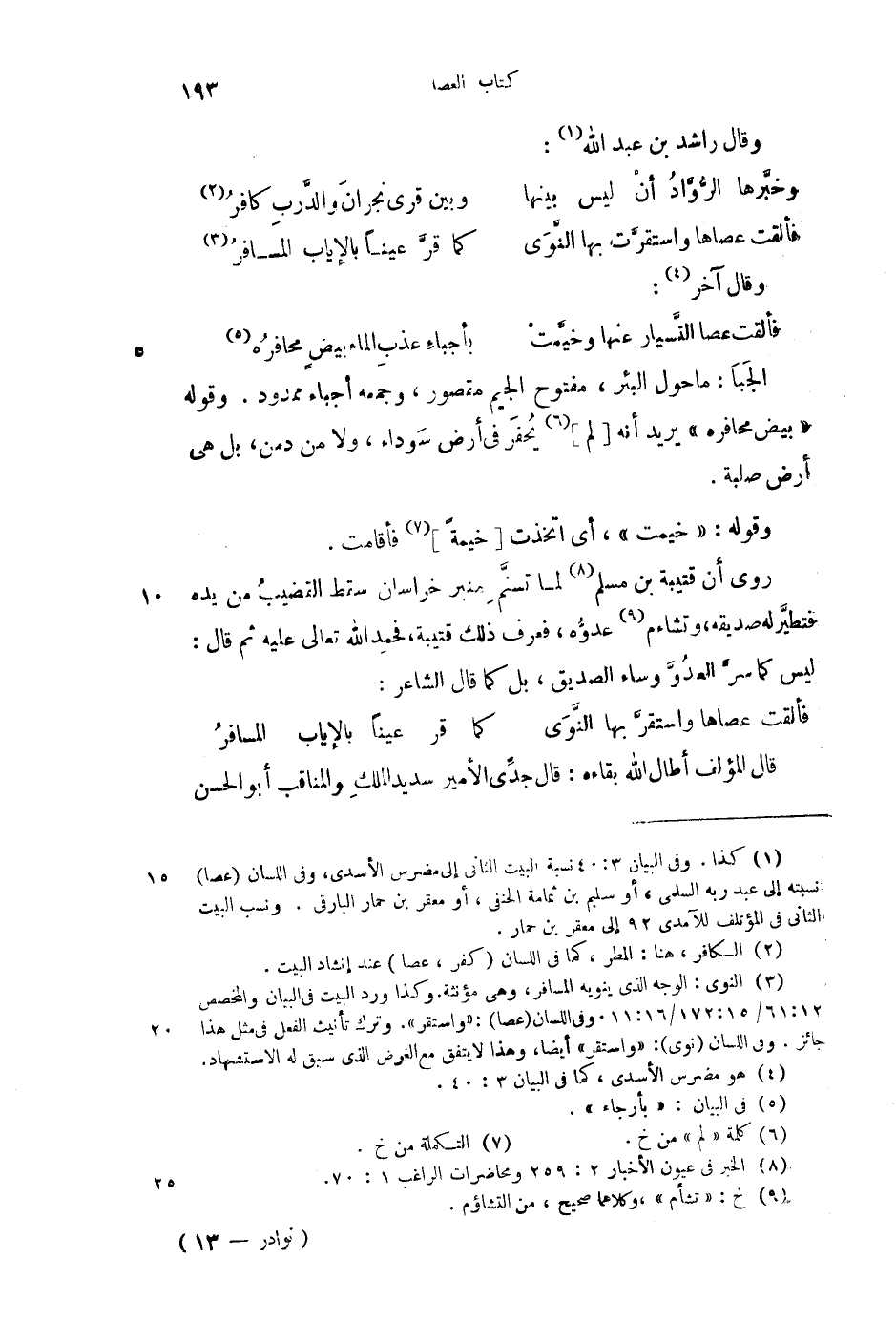 فألقت عصاها واستقرَّت بها النَّوى ... كما قرَّ عيناً بالإياب المسافرُ
