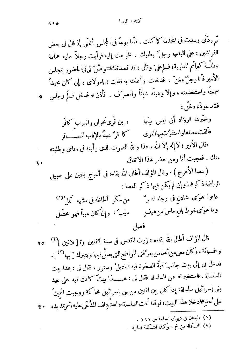 (عصا الأعرج) . وقال المؤلف أطال الله بقاءه في أعرج بيتين على سبيل الرياضة ذكرهما وإن لم يكن فيها ذكر العصا: