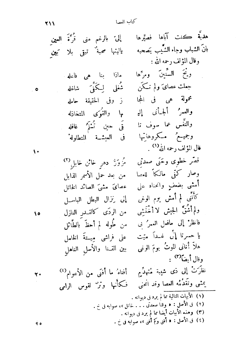 أمشي بضعفٍ وانحناء على ... عصايَ مسيَ الصائد الخاتل