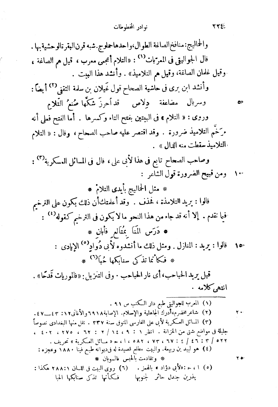 وروى: "التلام" في البيتين بفتح التاء وكسرها. أما الفتح فعلى أنه مرخم التلاميذ ضرورة. وقد اقتصر عليه صاحب الصحاح، وقال: "التلام التلاميذ سقطت منه الدال".
