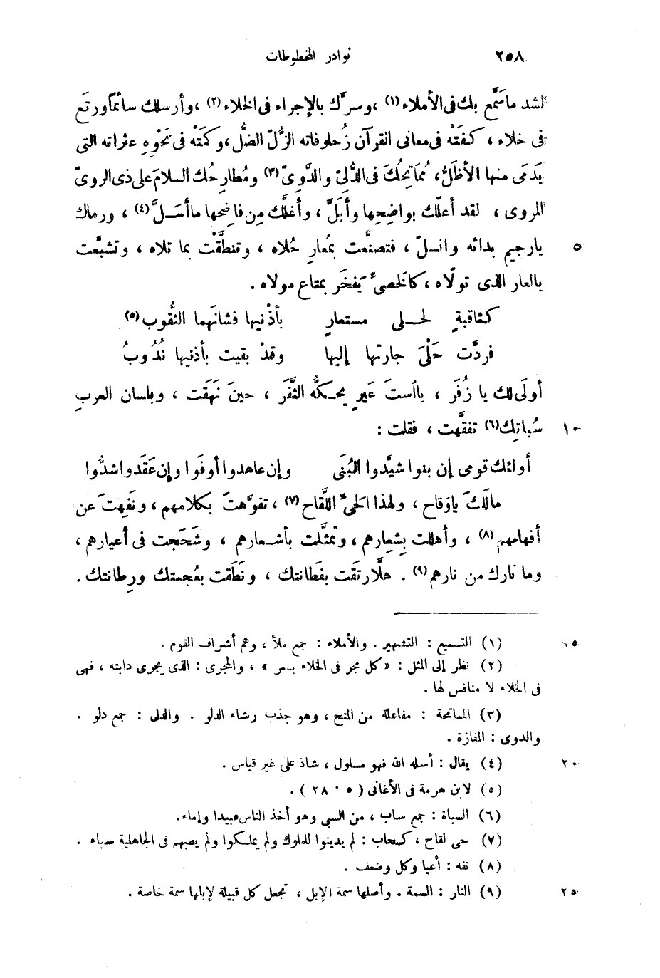 لشد ما سمع بك في الأملاء، وسرك بالإجلاء في الخلاء، وأرسلك سائماً ورتع في خلاء، كفته في معاني القرآن زحلوفاته الزل الضل، وكمته في نحوه عثراته التي يدمى منها الأظل، مما تحك في الدلى والدوى ومطارحك السلام على ذي الروى المروى، لقد أعلك بواضحها وأبل، وأغلك من فاضحها ما أسلَّ، ورماك يا رجيم بدائه وانسل، فتصنعت بمعار حلاه، وتنطقت بما تلاه، وتشبعت بالعار الذي تولاه، كالخصيِّ يفخر بمتاع مولاه.