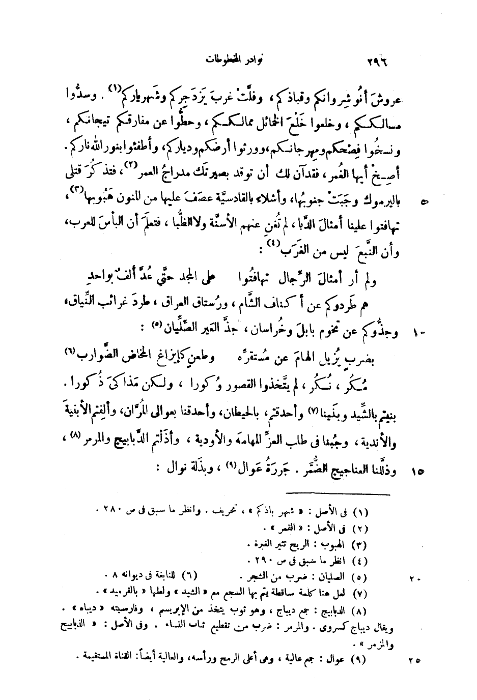 بنيتم بالشيد وبنينا وأحدقتم، بالحيطان، وأحدقنا بعوالي المران، وألفتم الأبنية والأندية، وجبنا في طلب العز المهامة والأودية، وأذلتم الدبابيج والمرمر، وذللنا العنانيج الضمر. جررة عوال، وبذلة نوال: