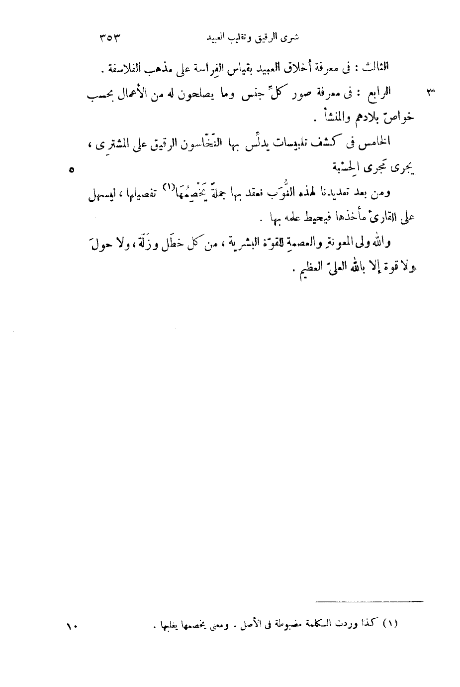 الثالث: في معرفة أخلاق العبيد بقياس الفراسة على مذهب الفلاسفة.